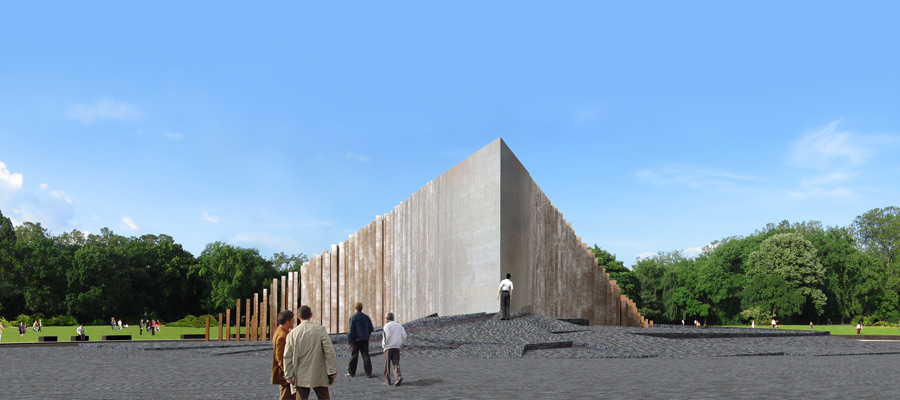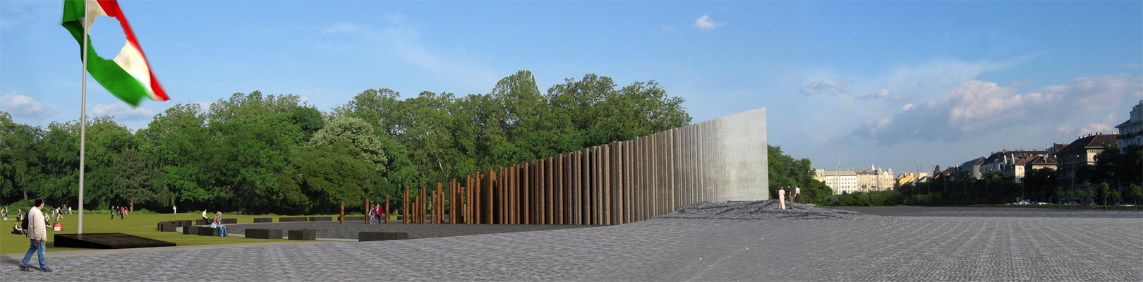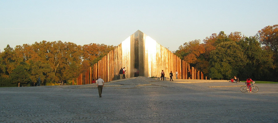 forma. Ahogy az ék éle feltöri a Felvonulási tér kövezetét,